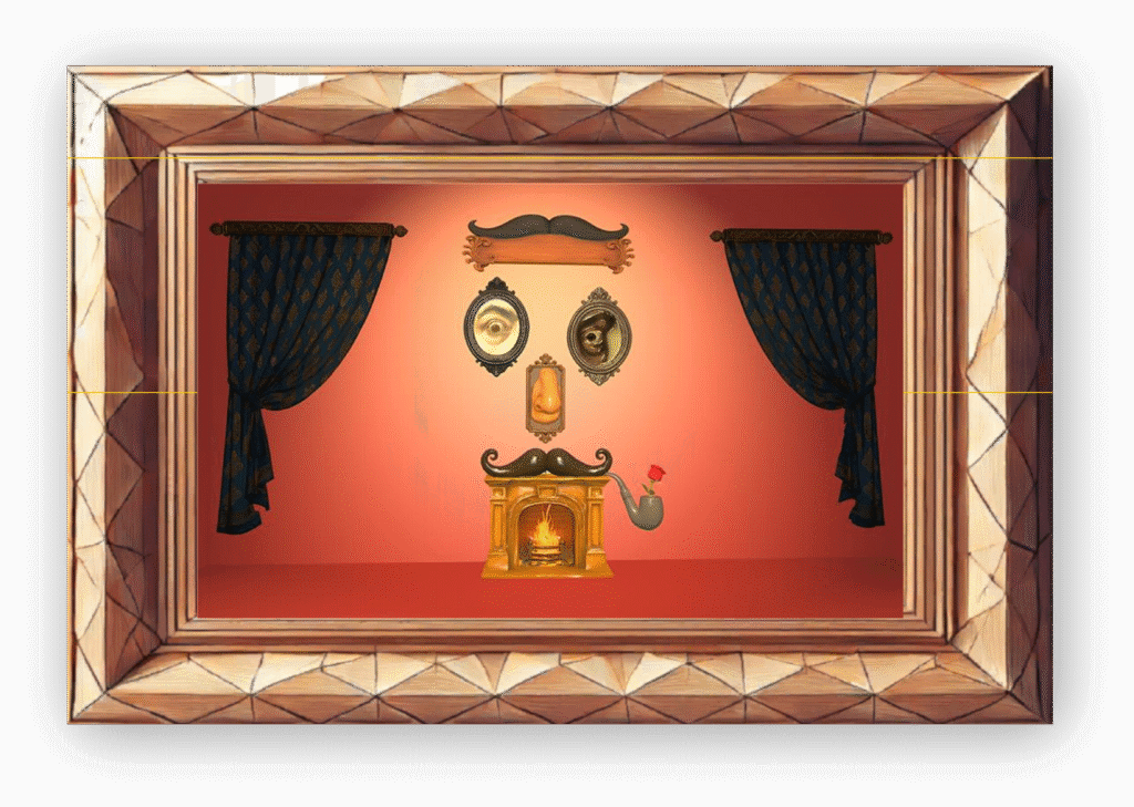 Each piece of furniture is a 3D model (a clock, curtain, or plant may become a nose, eye, or mouth). The puzzle process is both deconstructive and reconstructive, rearranging the familiar into something wonderfully strange.