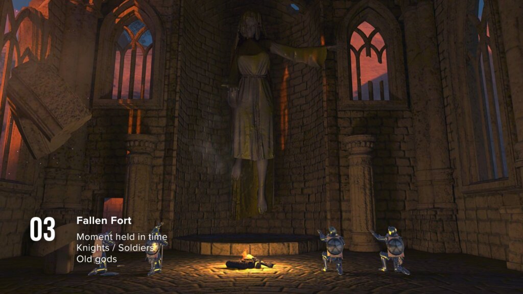 Step into a grand medieval cathedral, where towering stone arches and flickering candlelight set the stage for a timeless journey. This world features soaring ceilings, stunning, intricate wood carvings and beams, and striking lead-decorated windows. A solemn yet mysterious atmosphere is perfect for quests filled with reverence, intrigue, or hidden danger.